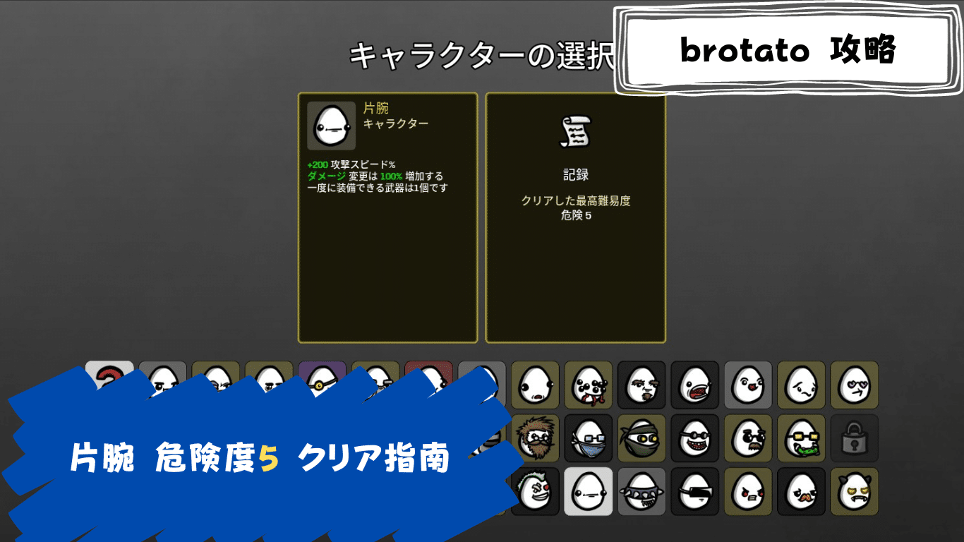 この記事では、brotatoの"片腕"のキャラクターの効果的なプレイ方法について解説します。