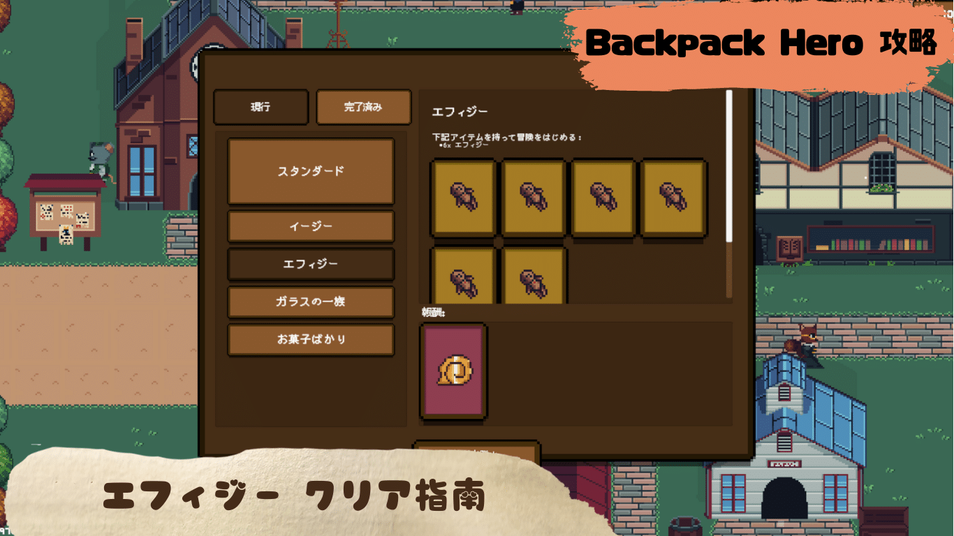 この記事では、Backpack Heroの各クエストの攻略法と、その際に出来上がったビルドやアイテムについて解説。 クリアした一例になるので、他にも効果的な方法があると思います。 クエスト毎にリンクがあります。リンク先にはコンボ例も記載。 参考になれば幸い。 パースのクエスト 選挙運動 このクエストは「制服ぬいぐるみ」を適切に管理することが重要。エナジー管理に留意しつつ、忘れずに使用することが成功の鍵。 うっかり、制服のぬいぐるみを使い忘れると即死する。 おすすめアイテム、戦略 エナジーが増えるアイテムが ...